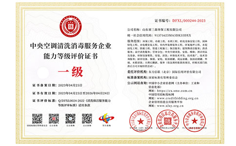 中央空調(diào)清洗消毒服務企業(yè)能力等級評價證書